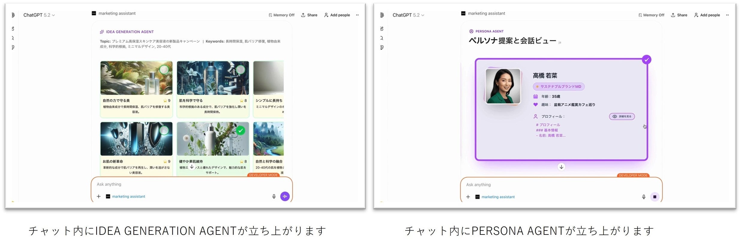 当社グループが構築する開発体制の特長は、電通が企業の事業・ブランド課題から逆算して最適なアプリケーションを設計し、電通総研が企業・官庁・自治体向けに開発してきたセキュアなデータ連携とガバナンスを担保した堅牢な実装基盤のもとで、電通デジタルが広告/クリエイティブ/メディアなどコミュニケーション領域における豊富な生成AI活用知見を統合しながら開発を進める点にあります。さらに、OpenAI社の提供する開発者向け環境を活用することで、「Apps in ChatGPT」の国内一般公開を経てアプリ提供が可能になります。今後、国内企業向けのワークショップやPoC支援プログラムも実施していく予定です。