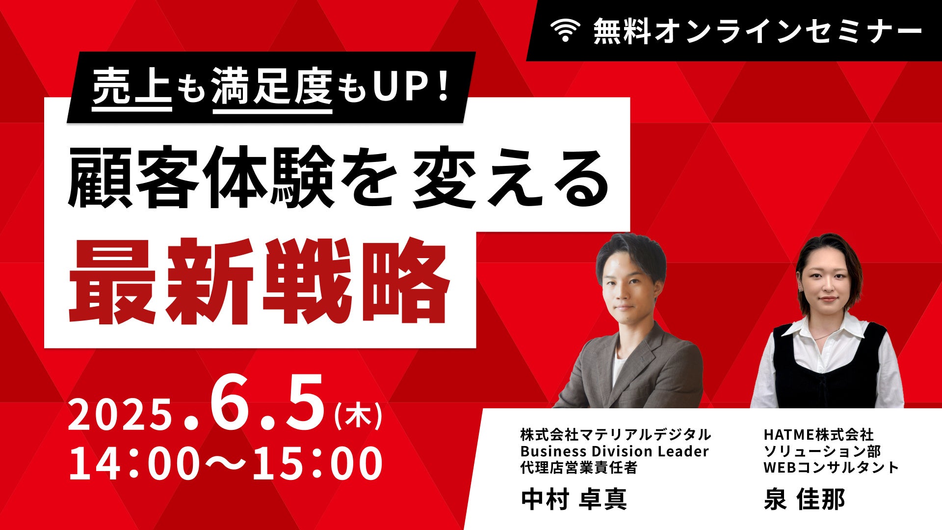 マーケティングアソシエーション株式会社の子会社であるHATME株式会社(本社:東京都台東区 代表取締役:中園広和、以下当社)は2025年6月5日(木)に、株式会社マテリアルデジタルと2社共催ウェブセミナー「売上も満足度もUP!顧客体験を変える最新戦略」を、開催いたします。
