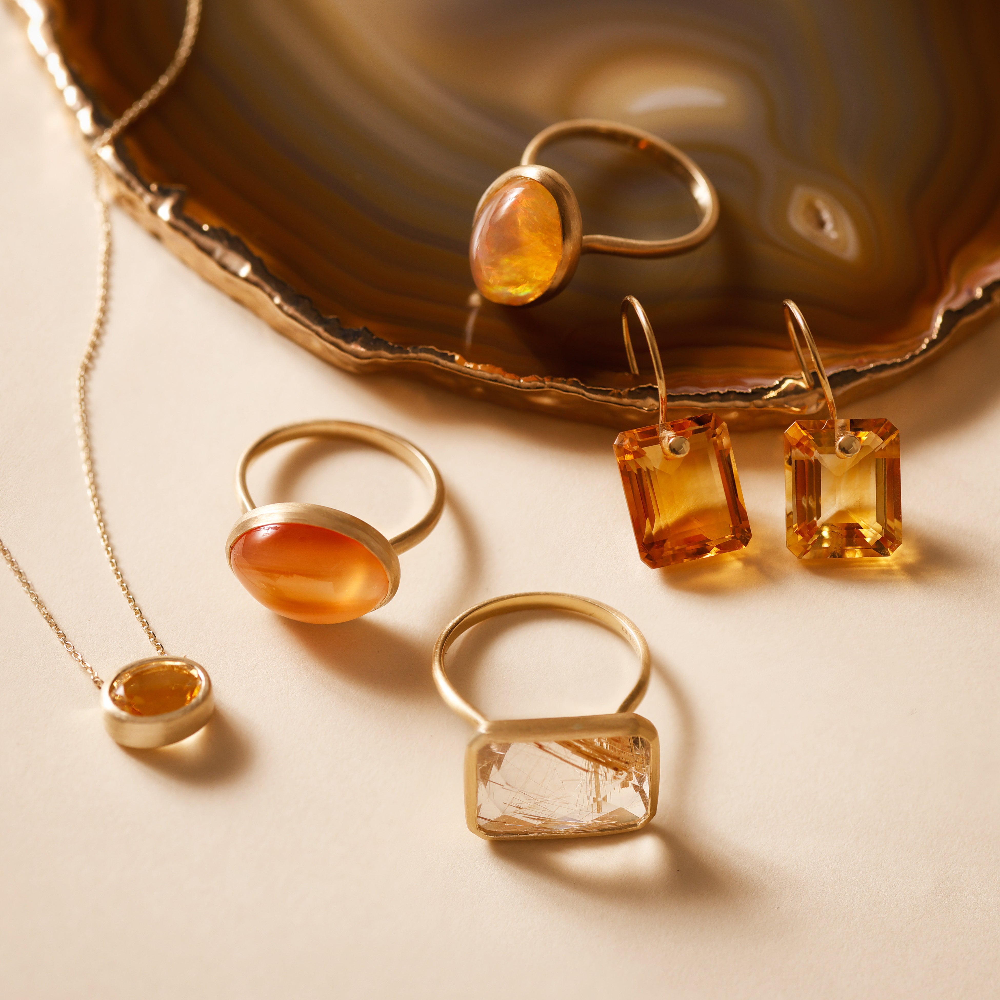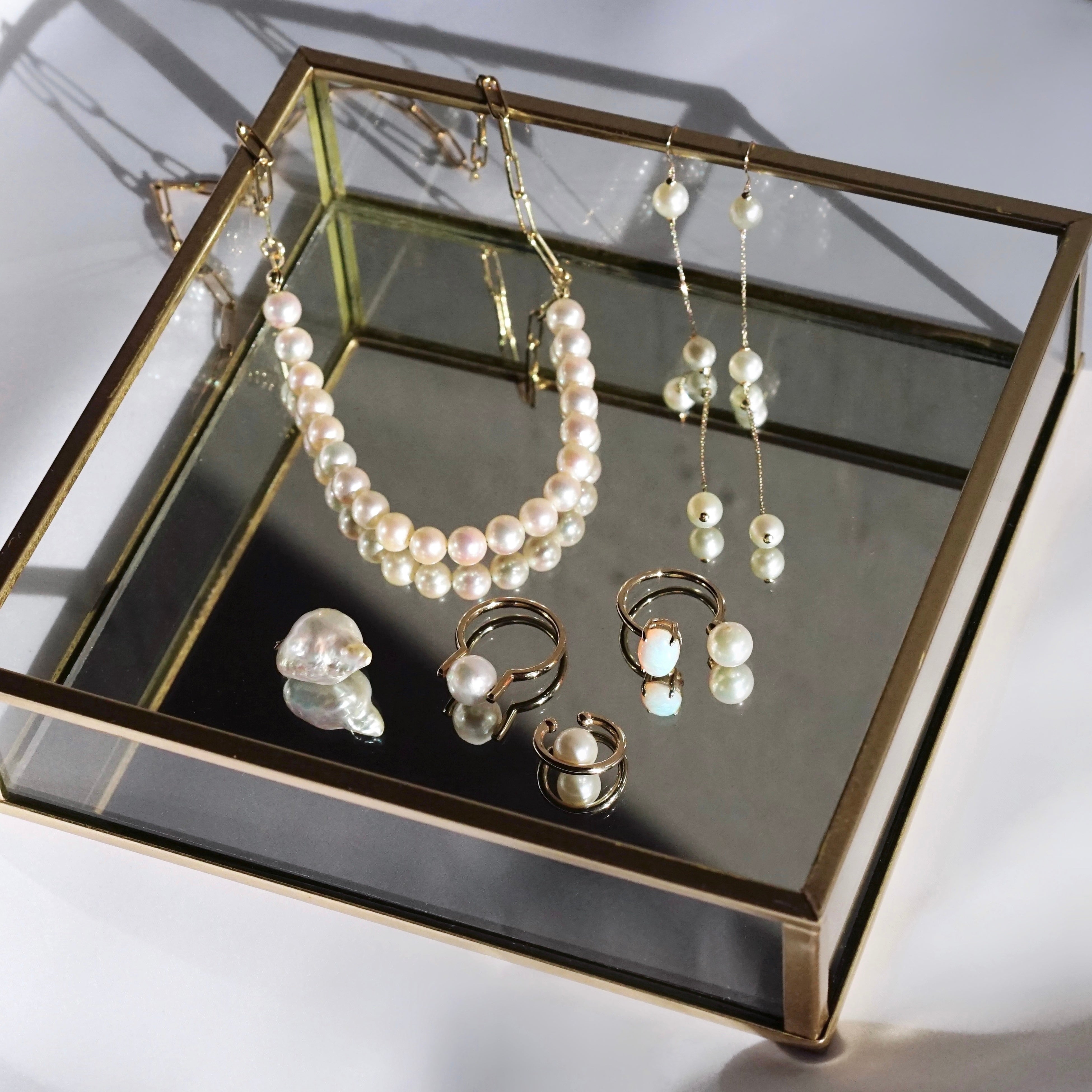 良質な天然石とパールを、K10、K18のイエローゴールドやシルバー925にあしらったネックレスやリング、イヤーカフなどのアイテムをご用意します。お客様が安心して長く使い続けられるよう素材選びや、デザインには特にこだわっています。