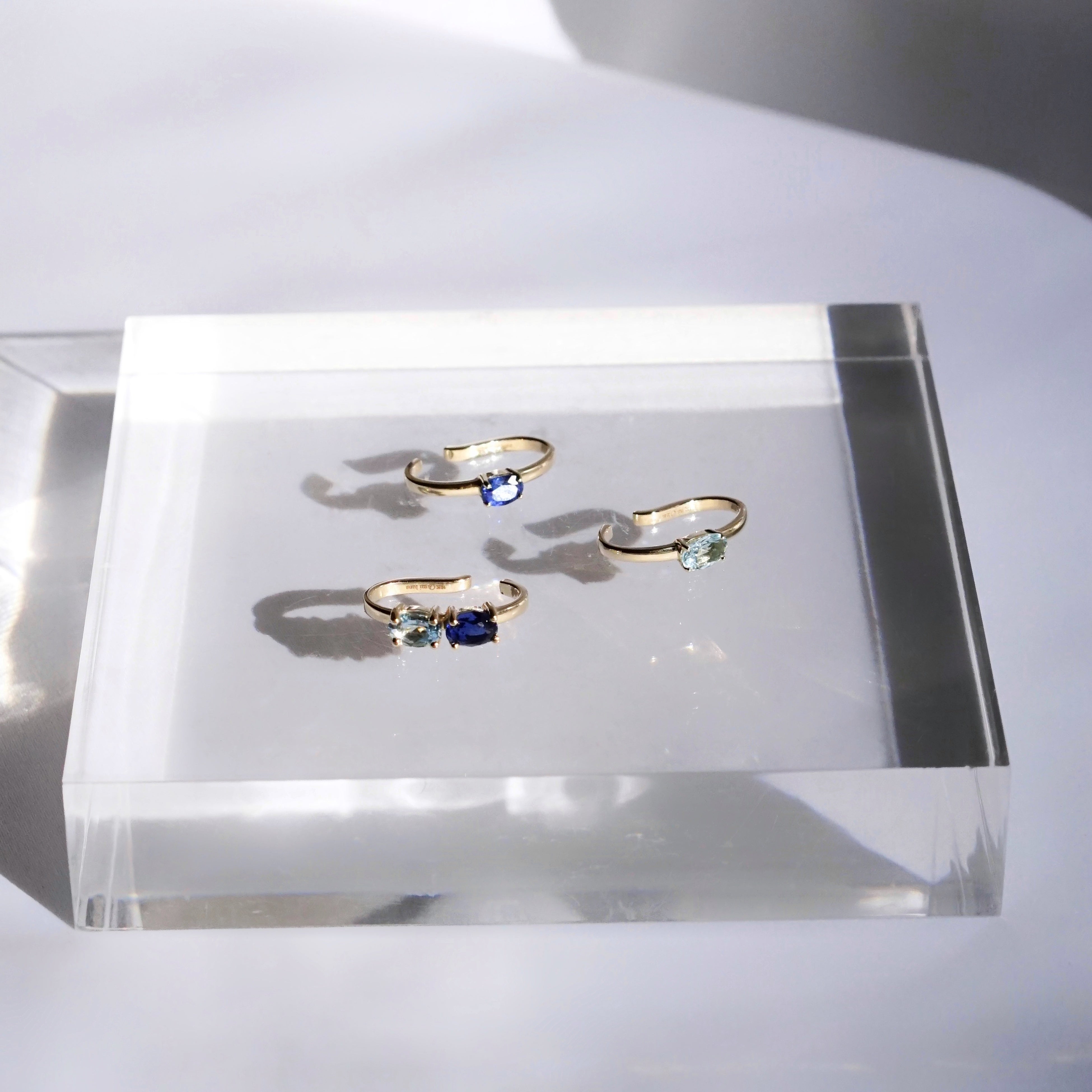 色とりどりの天然石と耳から流れ落ちるようなゴールドのアーチが スタイリッシュな雰囲気を纏ってくれるアイテムです。色や形の違う天然石を組み合わせたダブルのタイプは、唯一無二。 自分だけのスタイリングをお楽しみいただけます。
