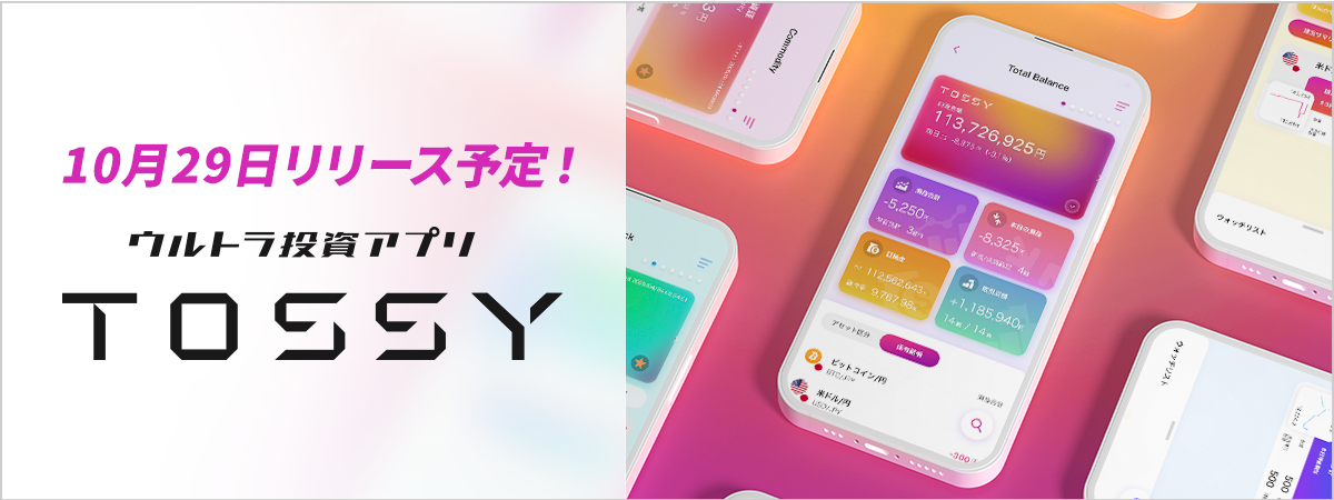 6つのアセットをアプリひとつでスピーディーに売買できる【ウルトラ投資アプリ TOSSY】提供のお知らせ