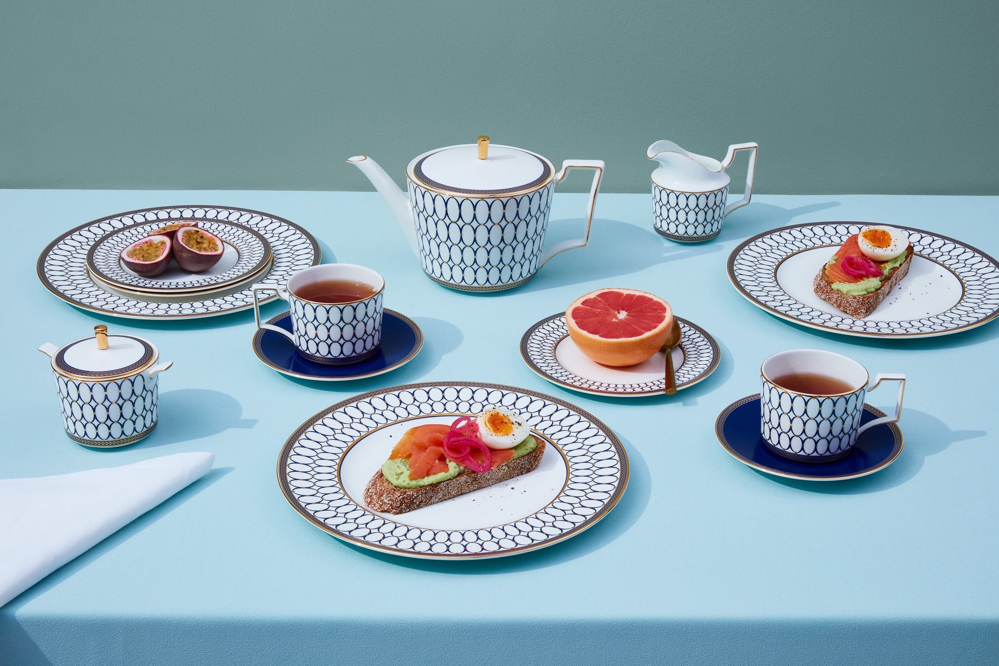 コバルトブルーの縁取りに神話上の動物が描かれており、テーブルセッティングに命を吹き込んでくれます。260年以上にわたって蓄積されたウェッジウッドの伝統にインスピレーションを得て、表情豊かなパターンとなりました。