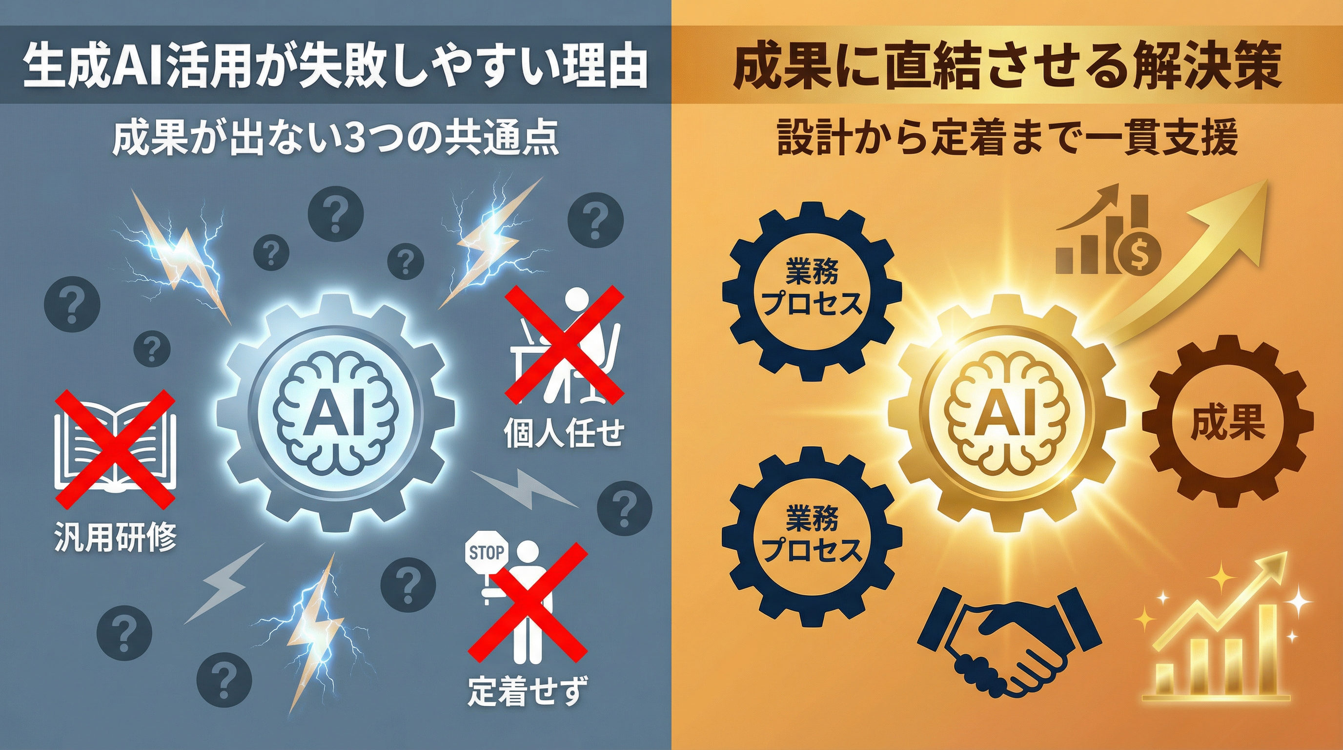 生成AIの業務利用が急速に広がる一方で、「導入したが現場で使われていない」「期待した成果が出ていない」といった声も多く聞かれます。