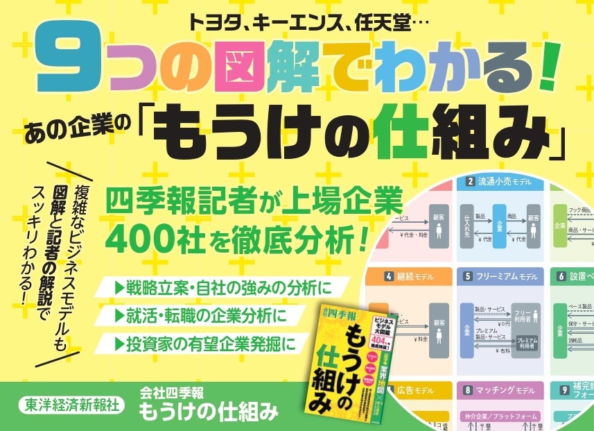 株式会社東洋経済新報社は、6月18日(水)に刊行した書籍『もうけの仕組み ビジネスモデル大図鑑 404社を徹底検証!』が、読者の皆様から多大な反響をいただき、発売翌日という異例の速さで重版が決定したことをお知らせいたします。