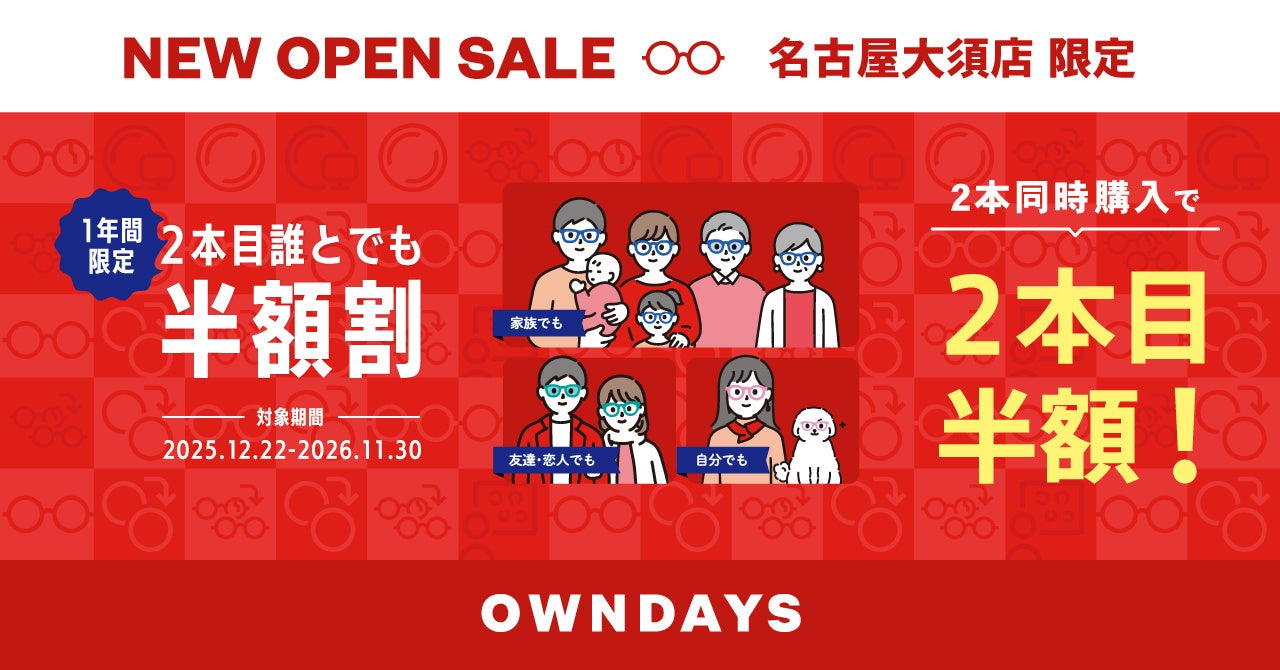 メガネ・サングラスの製造販売を手掛ける株式会社オンデーズ(本社:東京都品川区、代表取締役社長:海山丈司)は、2025年11月28日(金)に、中部エリアでは初となる2階建ての路面店「OWNDAYS 名古屋大須店」をオープンいたします 。