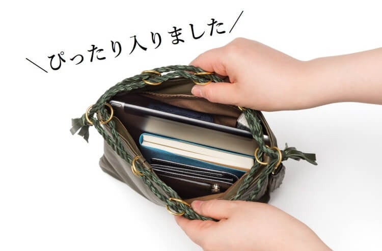 散歩やちょっとした買い物に、必要なものはすべて入るサイズ感です。
