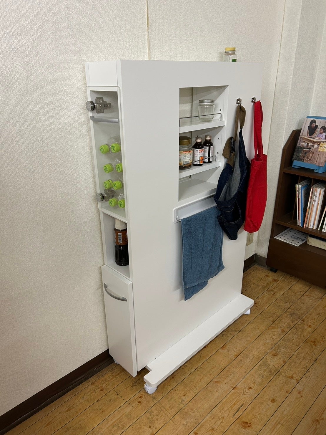 「食品や調味料を詰め込みすぎて場所が分からない」「置き場所が限られるため移動させたい」。そんな切実な声に応え、キャスター付きの薄型収納ラックを開発しました。隠す・見えるを使い分ける多彩な収納形状により、在庫が一目瞭然。転倒防止策も施したスリムな設計で、限られた空間を有効活用しながら、日々の使い勝手と安心を両立した一台です。