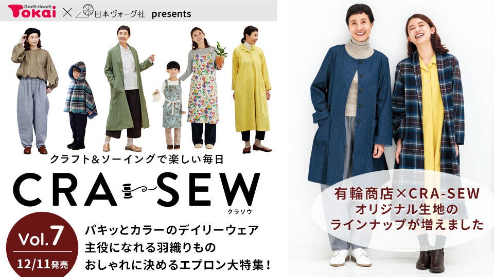 手づくり・ハンドメイドに関する事業を展開するジャパンクラフトホールディングスグループで、全国で手芸専門店「クラフトハートトーカイ」を展開する藤久株式会社(代表取締役社長:筒井 和宏)と、ハンドメイドに関する出版事業や教室事業を展開する株式会社日本ヴォーグ社(代表取締役社長:瀨戸 信広)が共同企画したソーイングの定期購読誌「CRA-SEW(クラソウ)vol.7」を2023年12月11日に発売しました。
