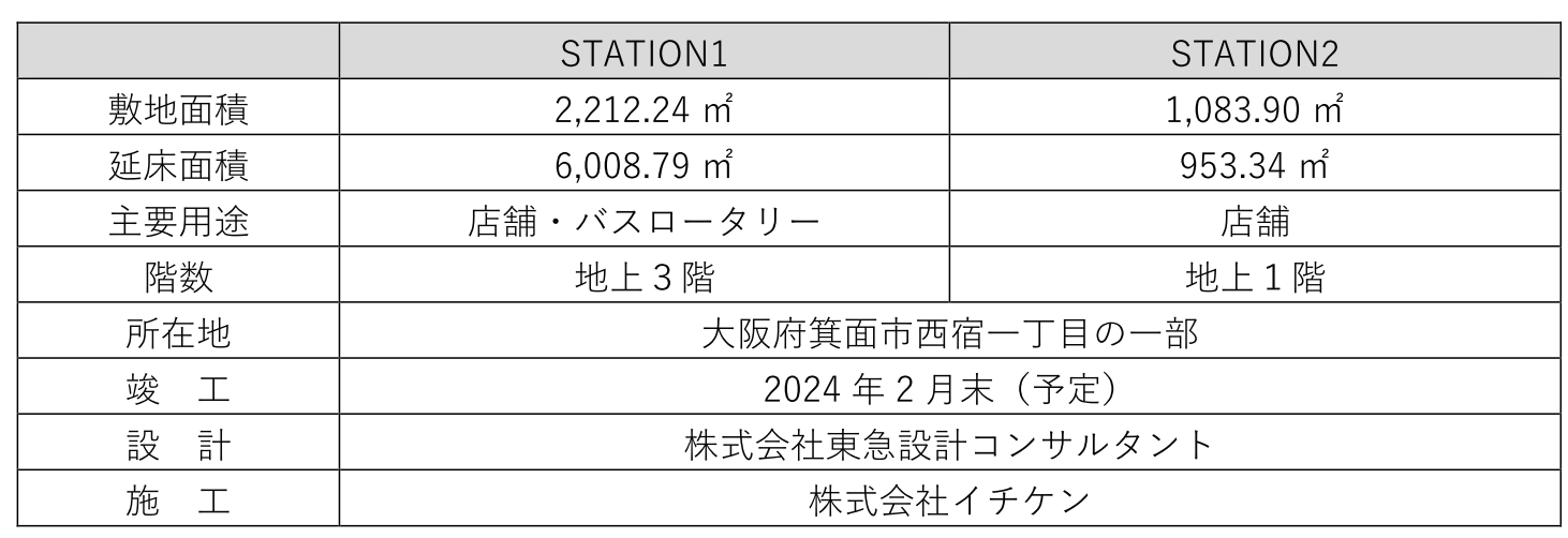 ■STATION1棟(駅前ビル)、STATION2棟(高架下店舗)の計画概要(予定)