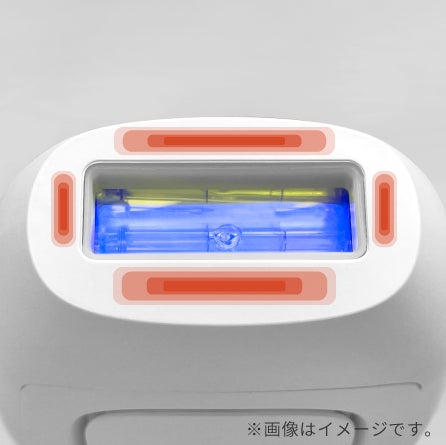 他の家庭用光美容器との違いは照射口の4点センサーにもあり、4点がしっかり肌に密着しないと照射できない設計に。処理効果を減少させる照射漏れを防ぎ、広範囲もムラなくケアします。