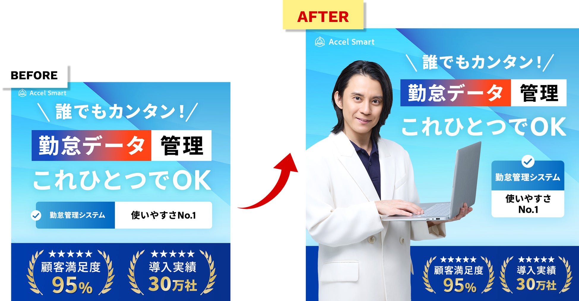 「アクセルジャパン」の素材で変わる、広告の印象(イメージ)