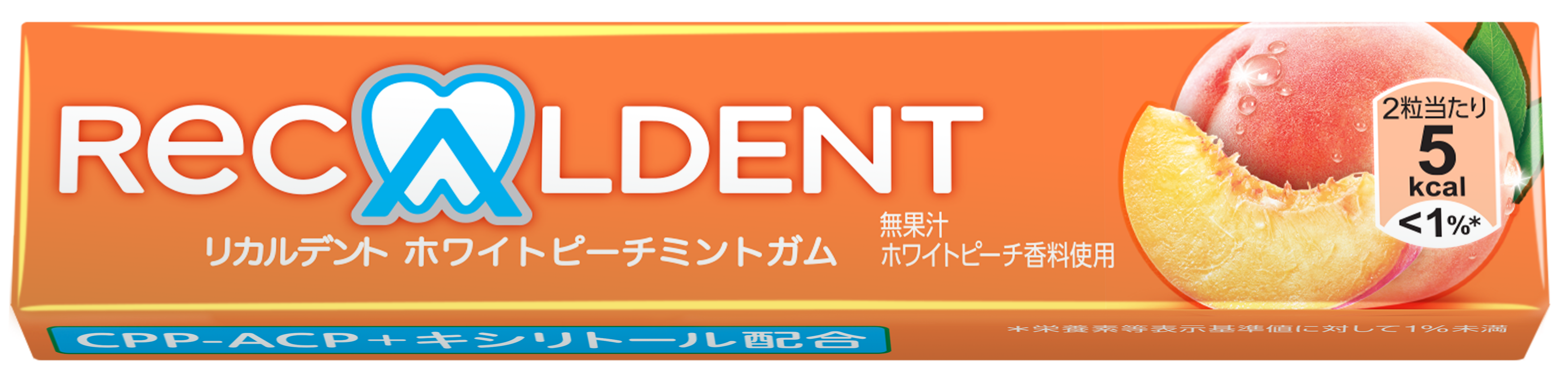 『リカルデント ホワイトピーチミントガム』は、他のリカルデントブランド製品にも含まれる牛乳由来成分「CPP-ACP」と、「キシリトール」の2種類を配合しています。「CPP-ACP」とは、乳タンパクからできたCPPと非結晶リン酸カルシウム(ACP)との複合体。メルボルン大学歯学部エリック・レイノルズ教授の長年に渡る研究により誕生しました。