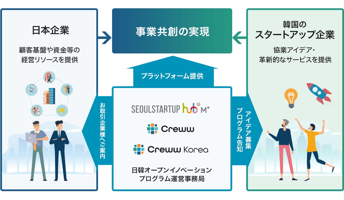 Creww株式会社(代表取締役:伊地知 天、以下「Creww(クルー)」)は、韓国最大の公共アクセラレータープログラムを推進するソウル市政策実行専門機関、ソウル経済振興院が運営する「ソウル創業ハブM⁺」と、Crewwの韓国拠点であるCreww Koreaと共に、韓国のスタートアップとのグローバル共創プログラム『Japan Open Innovation Program 2025』(以下、本プログラム)を実施することをお知らせします。