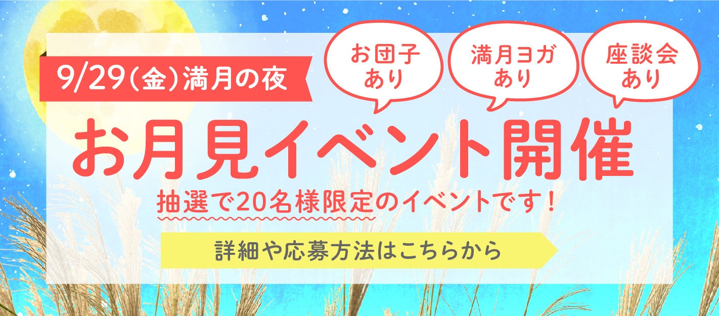 2023年9月29日(金)は満月です。年に1度の中秋の名月を感じながら、ヨガセラピストによる「座ってできる満月ヨガ」や会員同士の座談会で、忙しい日々で一呼吸できる時間を提供します。