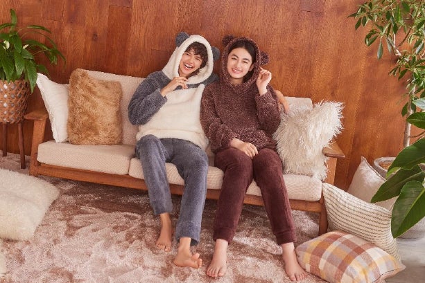 本CMでは、クマ耳のラウンジウェアを着た八木さんが、同じく耳付きのラウンジウェアを着た友人たちと、リラックスしたおうちでの時間を楽しむ内容になっています。ふわふわであたたかいマシュマロフィールを着用し、リラックスした表情の八木さんにぜひご注目ください。