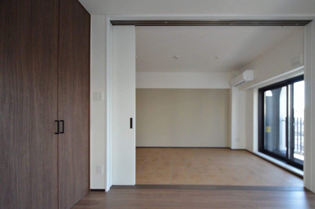 単身世帯からDINKSをターゲットに、ペットとの共生(中型犬・2匹まで)やガーデニングなど、アクティブな生活をアシストする仕掛けを設えました。ペット対応の床材や壁紙を採用するとともに、リビングはビニル床タイルとすることで半屋外のような空間としました。ガーデニングを楽しんだり、リビングの一画をインナーテラスのようにお使いいただけます。間取りは、フルハイトの可働間仕切でワンルームとしても使える1LDKを中心に、最上階は一部スラブを解体し、下階とつなげることでルーフバルコニー付きメゾネット住戸を計画しました。また、暮らしやすさにこだわり、収納計画や家電・家具の配置などを考慮、内装デザインは、ナチュラルで温かみのあるテイストとしました。