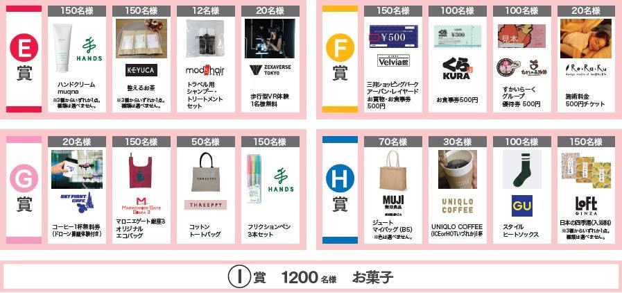 マロニエゲート銀座1、マロニエゲート銀座2、マロニエゲート銀座3、無印良品銀座、銀座ロフト(ニトリEXPRESS・JINS含む)の当日のお買い上げレシートご持参で税込3,000円ごとに1回抽選できます。