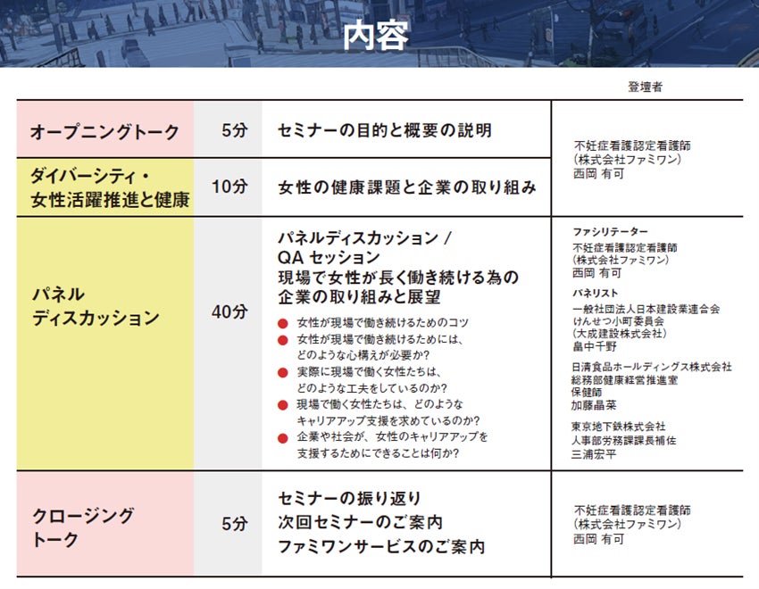 実際に外で働く女性にとっても、建設業、サービス業、交通業等外で働く方々に携わる企業の人事・労務の方にとっても非常に有益なセミナーとなります。
