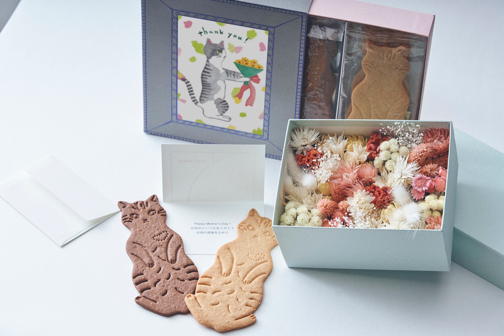 フラワーアーティスト前田有紀さん主宰「gui」の美しいフラワーボックスと人気ネコクッキーのギフトセット!