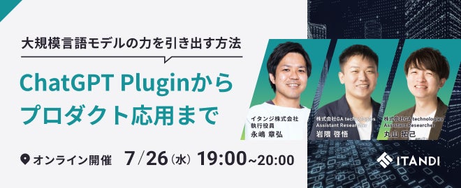 7/26(水)19:00~ウェビナー実施!ChatGPT Pluginからプロダクト応用まで〜大規模言語モデルの力を引き出す方法〜