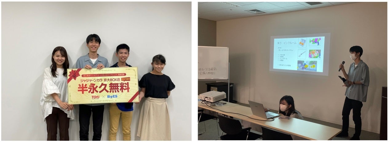 西日本最大級のカラオケチェーン「ジャンカラ」を展開する株式会社TOAI(以下「当社」)は、今までになかったカラオケルームを生み出すことを目的に、京都大学生(以下「京大生」)が運営する株式会社BoCSと新たなコンセプトルームの企画・発案コンテストを実施しました。