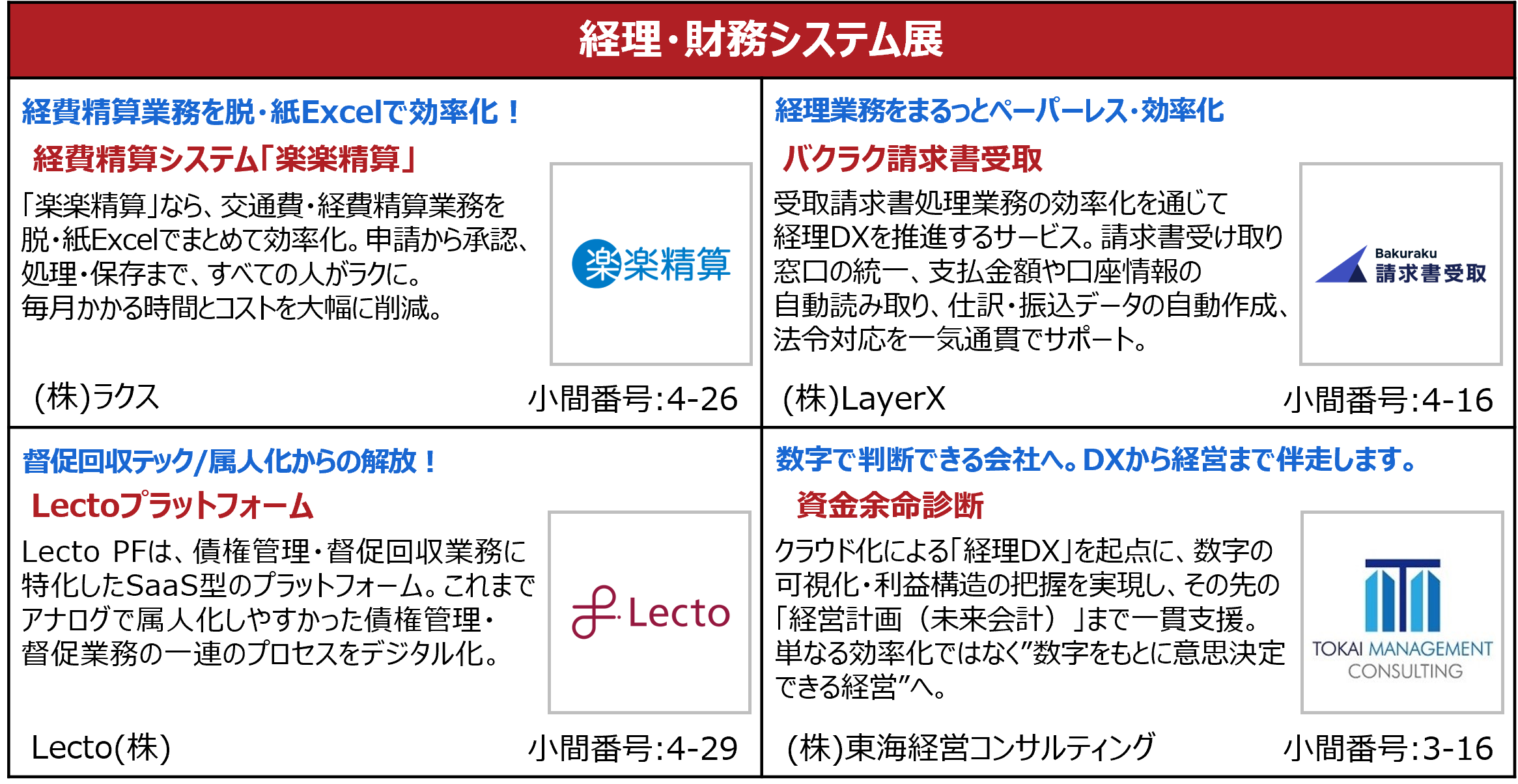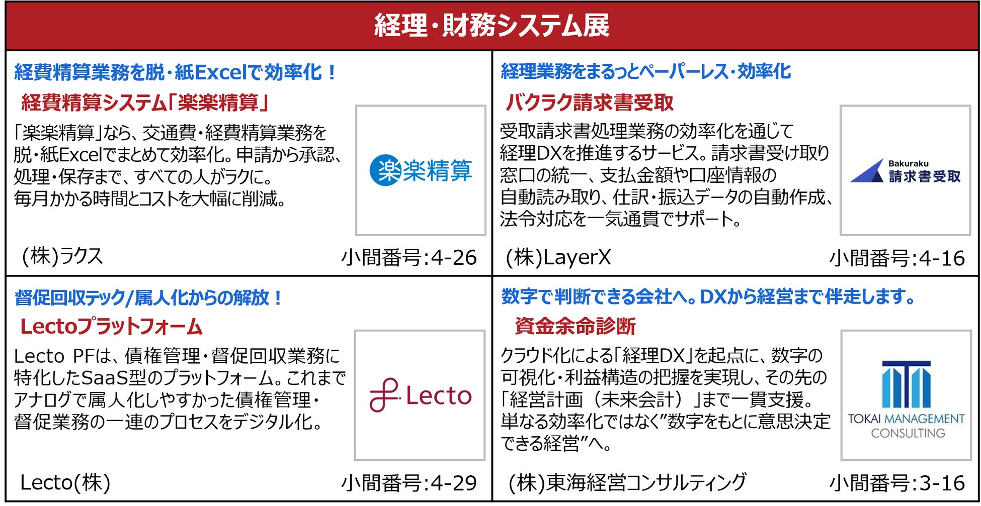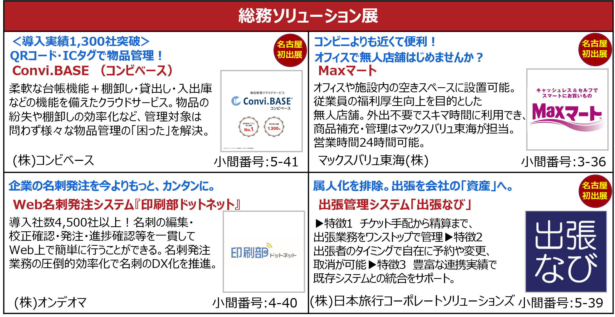 バックオフィスDXPO名古屋’26 出展製品・サービス(一部抜粋)