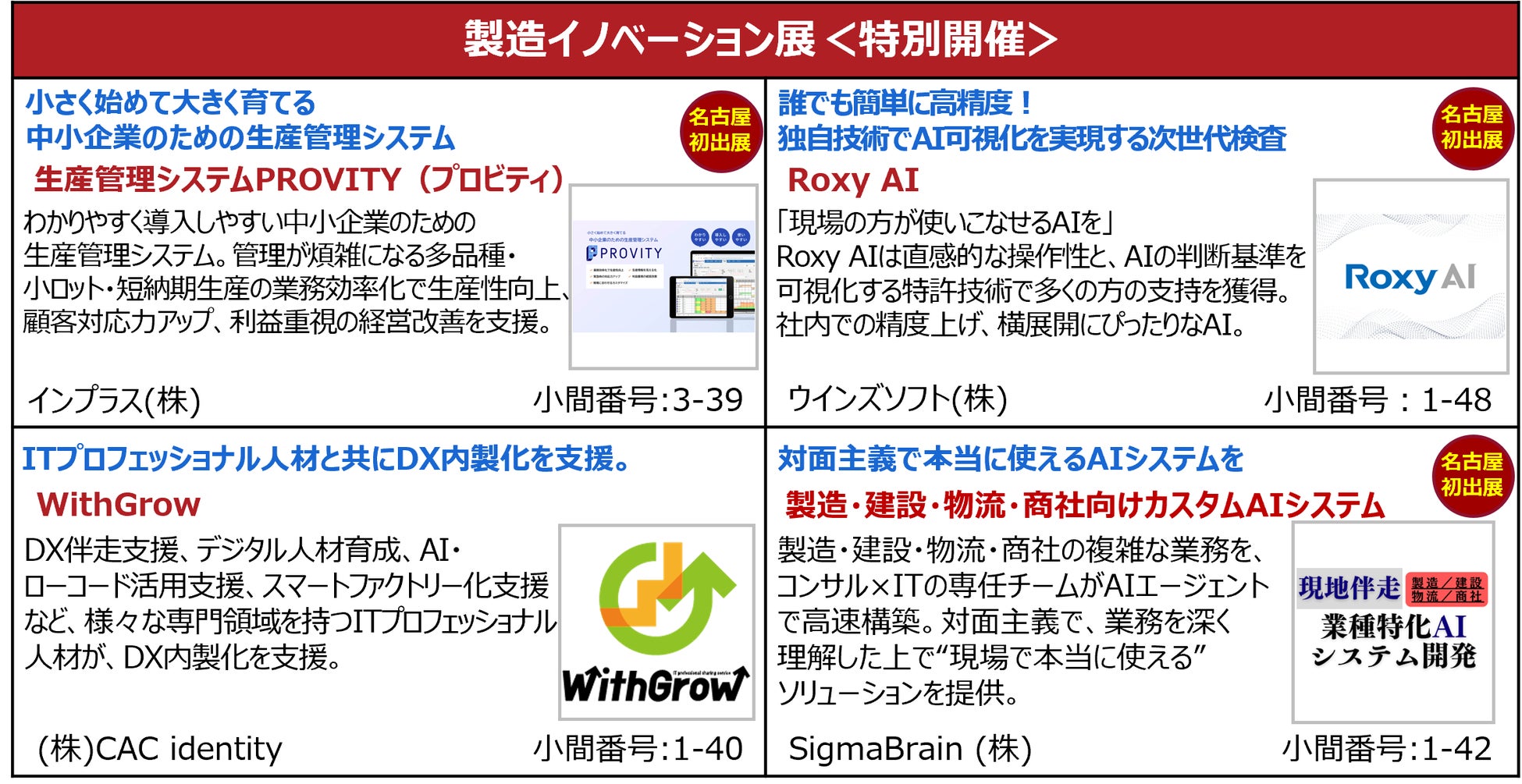 展示会事業、M&A仲介事業、人材採用支援事業などを展開する、ブティックス株式会社(東京都港区、代表取締役社長 新村祐三、東証グロース上場 証券コード:9272)は、5月19日(火)・20日(水) の2日間「第2回 バックオフィスDXPO名古屋’26」をポートメッセなごやにて盛大に開催する。また、本展示会内で特別開催する「製造イノベーション展」には製造業の業務効率化・DX推進のための製品をはじめ、セキュリティ強化や人材不足対策のサービスが集う。来場対象者は、あらゆる業種の経営層はもちろん、バックオフィス部門(総務・人事・労務・経理・財務・情報システム等)、製造部門の方々である。