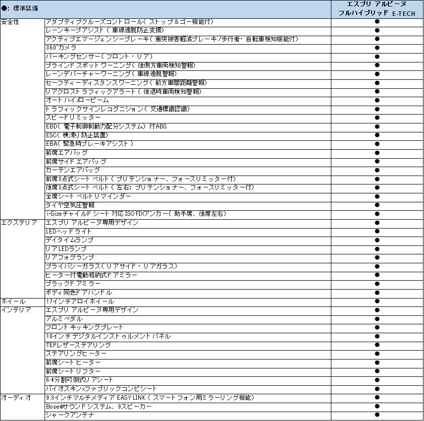 新たに導入されたエスプリ アルピーヌグレードは、アルピーヌのモダンでエレガントなエッセンスを取り入れた、スポーティで上質な内外装が特徴です。