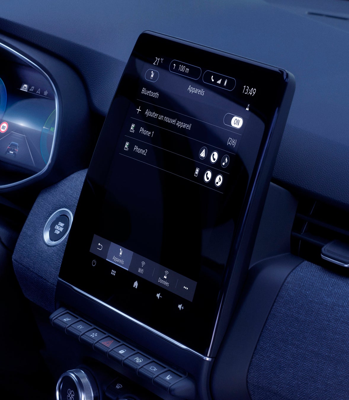 センターコンソール中央のディスプレイには、スマートフォン用ミラーリング機能が付いた9.3インチマルチメディア EASY LINK縦型タッチスクリーンが新たに装備され、オーディオ、電話、運転・駐車支援システム、車両設定等の各種操作が行えるほか、Apple CarPlay™とAndroid Auto™が使用できます。