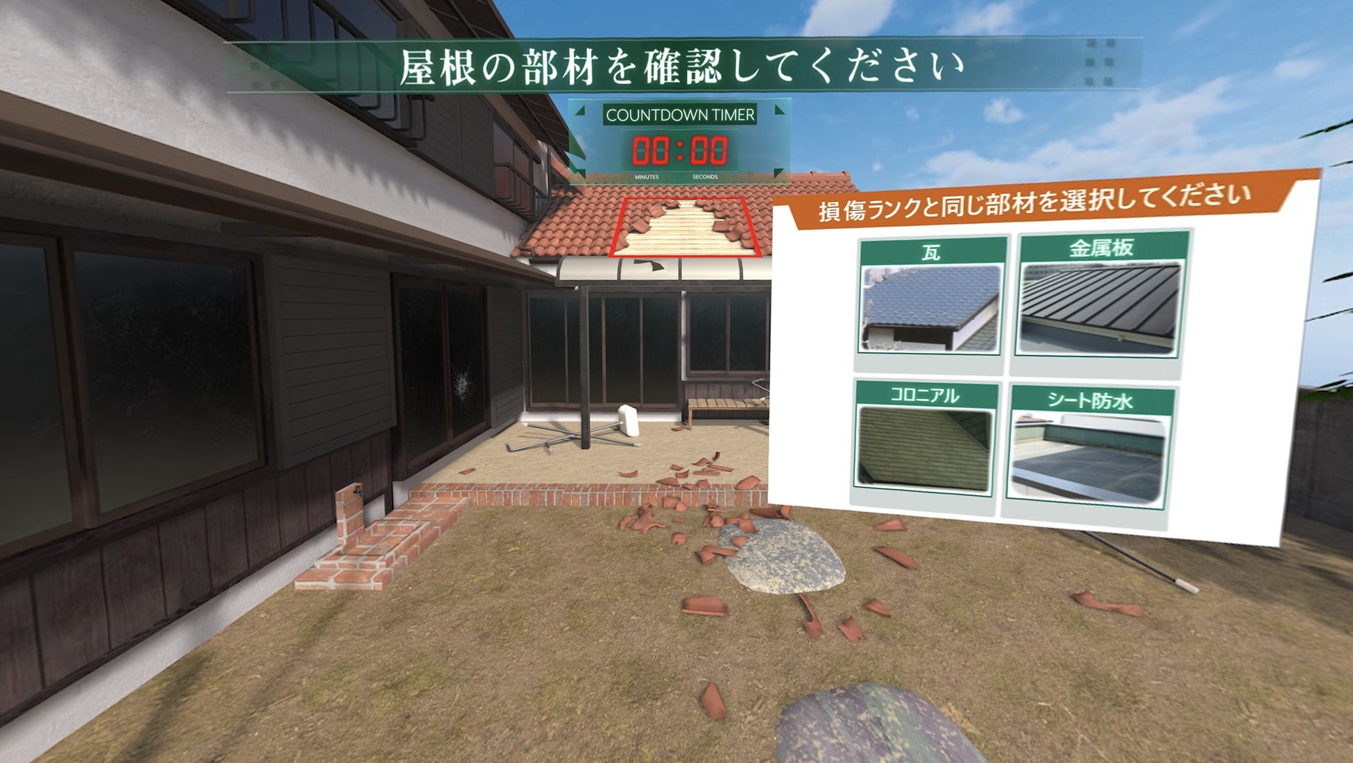 各研修コンテンツは、調査員視点の実写パートと、受講者が自らコントローラーを操作して調査を行う損害調査現場を再現したCGパートの構成からなり、没入感をもって損害調査を疑似体験できる内容となっています。