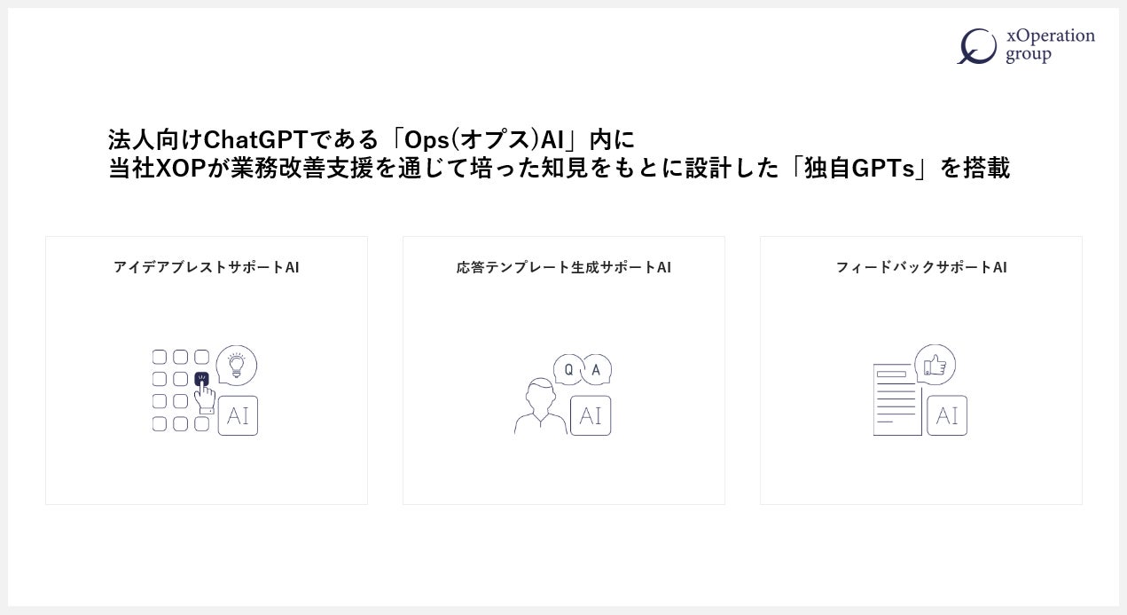 XOP、アイデアブレストサポート AI・応答テンプレート生成サポートAI・フィードバックサポートAIをリリース。法人向けChatGPT「OpsAI」内に搭載。