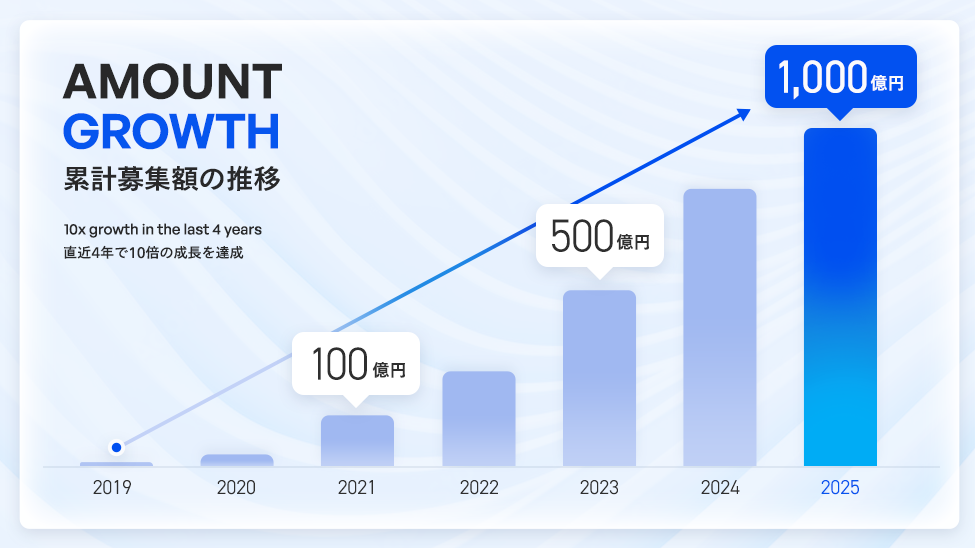 Fundsは2019年1月のサービス開始から、わずか6年8ヶ月で累計募集額1,000億円を達成いたしました。