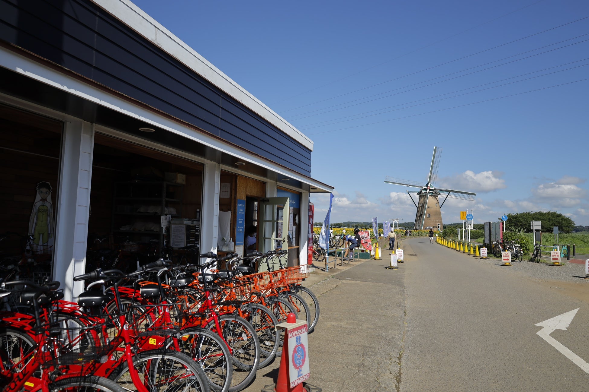 レンタサイクルの貸し出しを行っています。自転車を借りて、印旛沼湖畔のサイクリングロードを楽しもう!