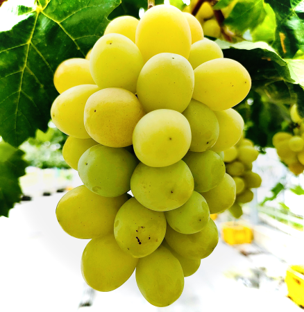 ぶどうは日々新たな品種が生まれ続けており、近年絶大な人気を誇るシャインマスカットを親に持つ品種も次々開発されています。