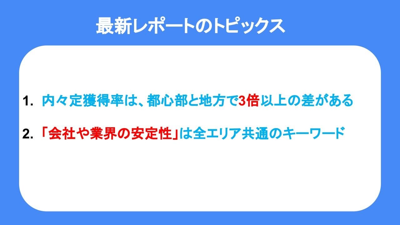 1.内々定獲得率は、都心部と地方で3倍以上の差がある