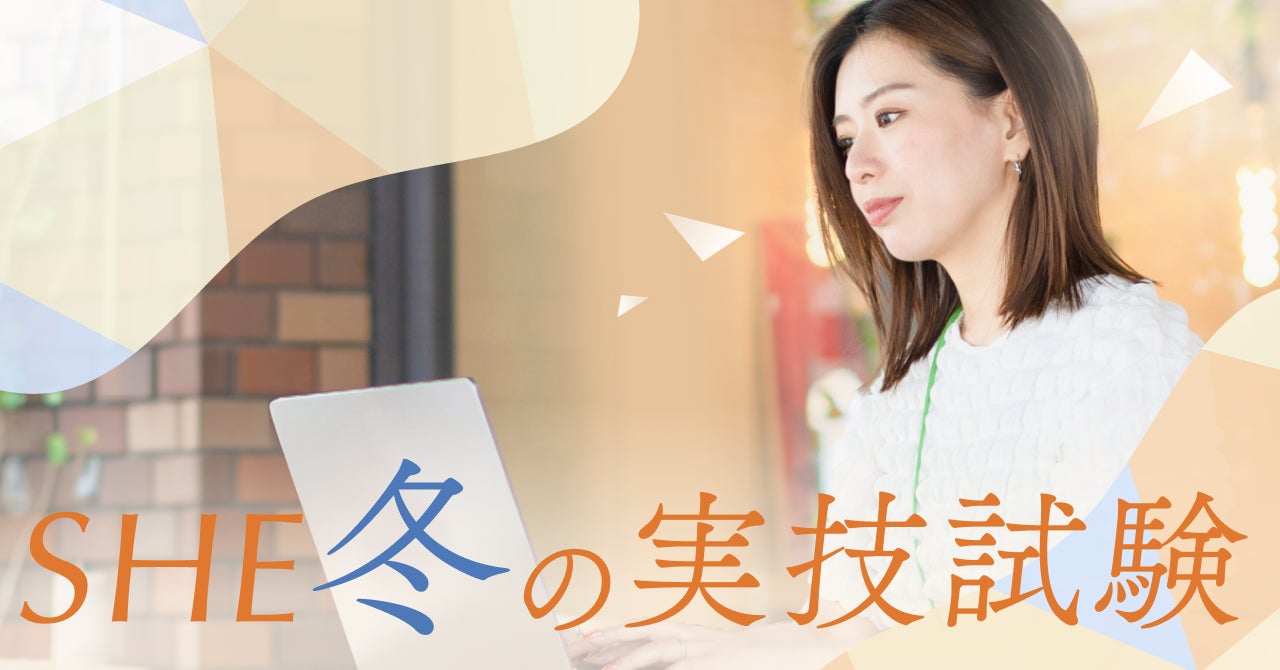 「SHE冬の実技試験」は、1週間という決められた期間中に、各コースの実技試験を提出していただくイベントです。SHE大人の冬期講習のトレーニングや自主学習で身につけたスキルレベルを確かめる場としてご活用ください。