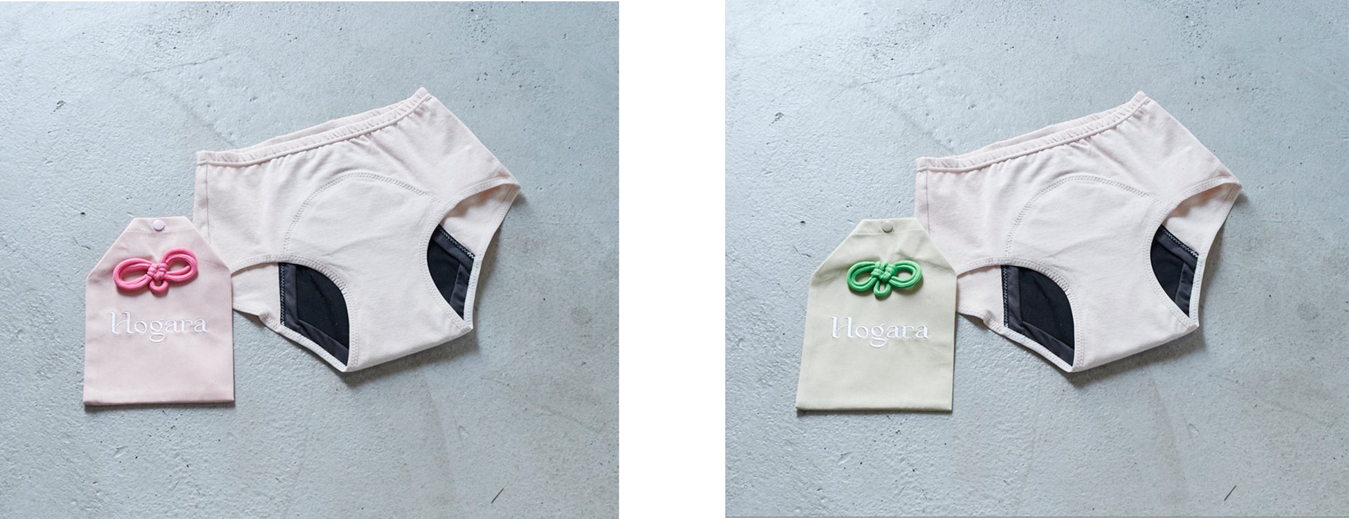 『Hogara』は、サニタリーで女性が持つ不安や失敗経験に対し、サニタリー期間中のおまもりになるような役割として、吸水ショーツを使用してほしいという想いから、おまもり型のポーチがついた「#おまもりショーツ™」を展開しています。この度の『FOOD TEXTILE』とのコラボレーションでは、廃棄予定のコーヒーの出涸らし、抹茶、ムラサキキャベツ、ブルーマロウから抽出した色で染めた生地をおまもり型ポーチの素材に使用しています。廃棄予定の食材はカフェや農園から買い取っており、化学染料では出すことができない、自然由来のものだからこそ出せる優しい色合が魅力となっています。