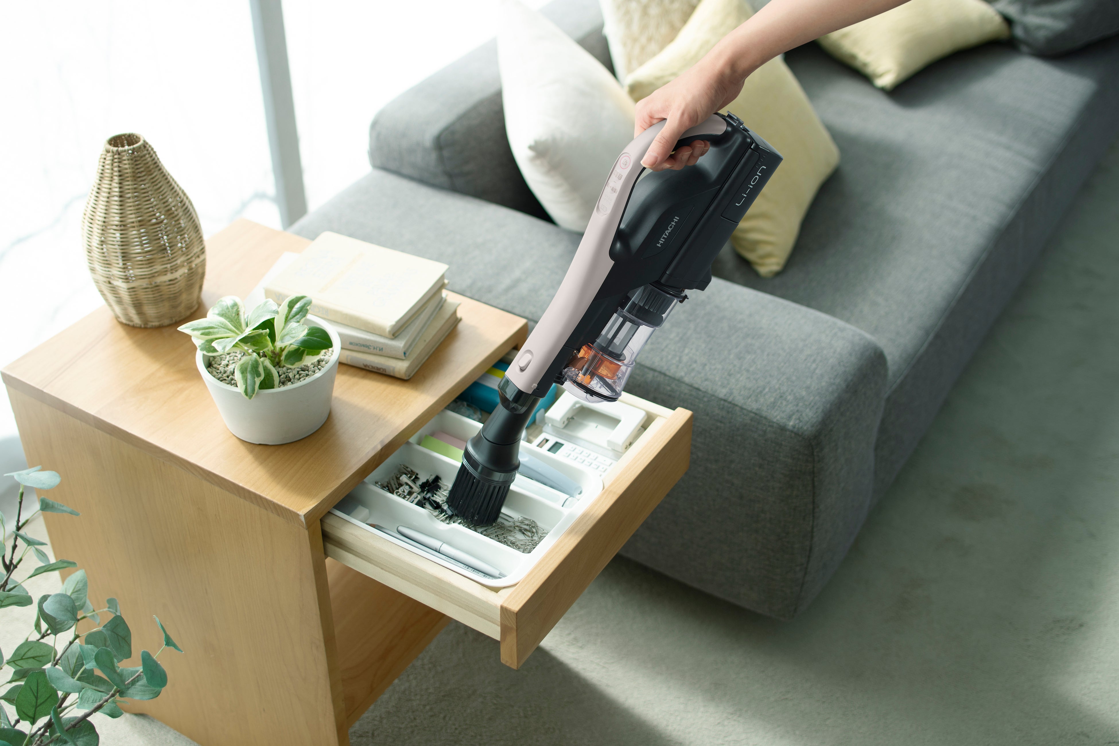 小型・軽量でもハイパワーのファンモーターを採用。空気の流れを効率よく制御し、気になるごみもしっかり吸い込みます。軽くて、よく吸って、しかも取り回しやすい。手もとが軽く、持ち運びもラクラクです。簡単にお部屋がキレイになっていくから、いつものお掃除がグンと楽しくなります。