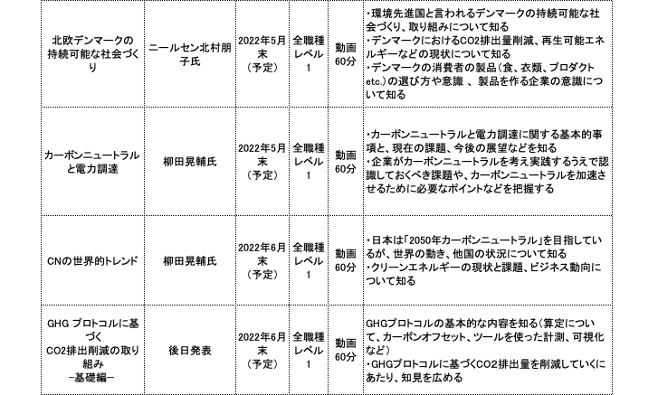 アイデミーはこうした全職種を挙げて必要な変革を組織面で支えるため、GX(グリーン・トランスフォーメーション)をテーマにしたeラーニング講座を2021年から作成しています。こうしたeラーニング講座を全職種で受講いただくことで、環境に配慮した製品・サービスを提供することへの基礎的な理解を促進しながら、各部門でカーボンニュートラルをリードするGXリーダーを見つけることができます。