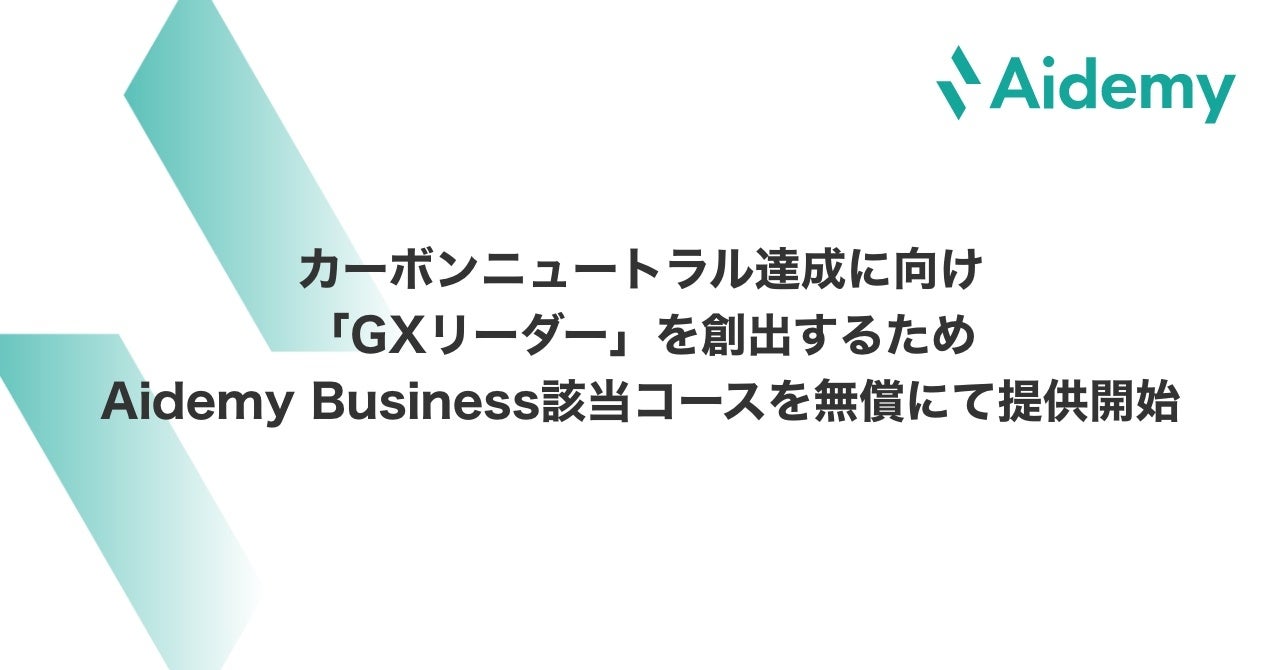 AIを中心としたDX人材の育成から実運用まで一気通貫で支援する株式会社アイデミー(本社:東京都千代田区、代表取締役執行役員社長CEO 石川聡彦、以下「アイデミー」)は、2022年4月7日よりカーボンニュートラル達成に向け「GXリーダー」創出のため、Aidemy Businessの該当コースを無償にて提供開始します。