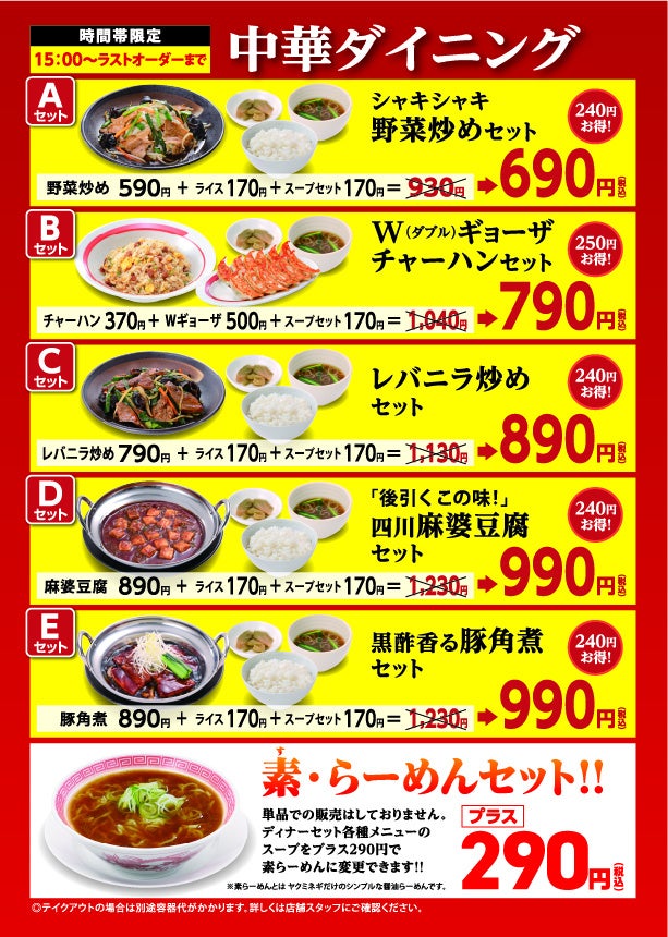 幸楽苑の時間帯限定「ディナーセット」が「中華ダイニング」にリニューアル!新商品「四川麻婆豆腐」と「黒酢香る豚角煮」を加え5つのセットへ!