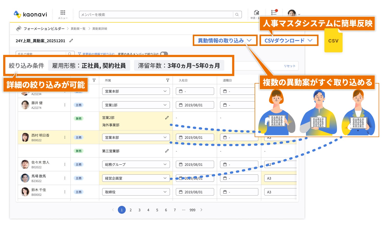 ・異動検討から取りまとめまで「カオナビ」上で完結できる