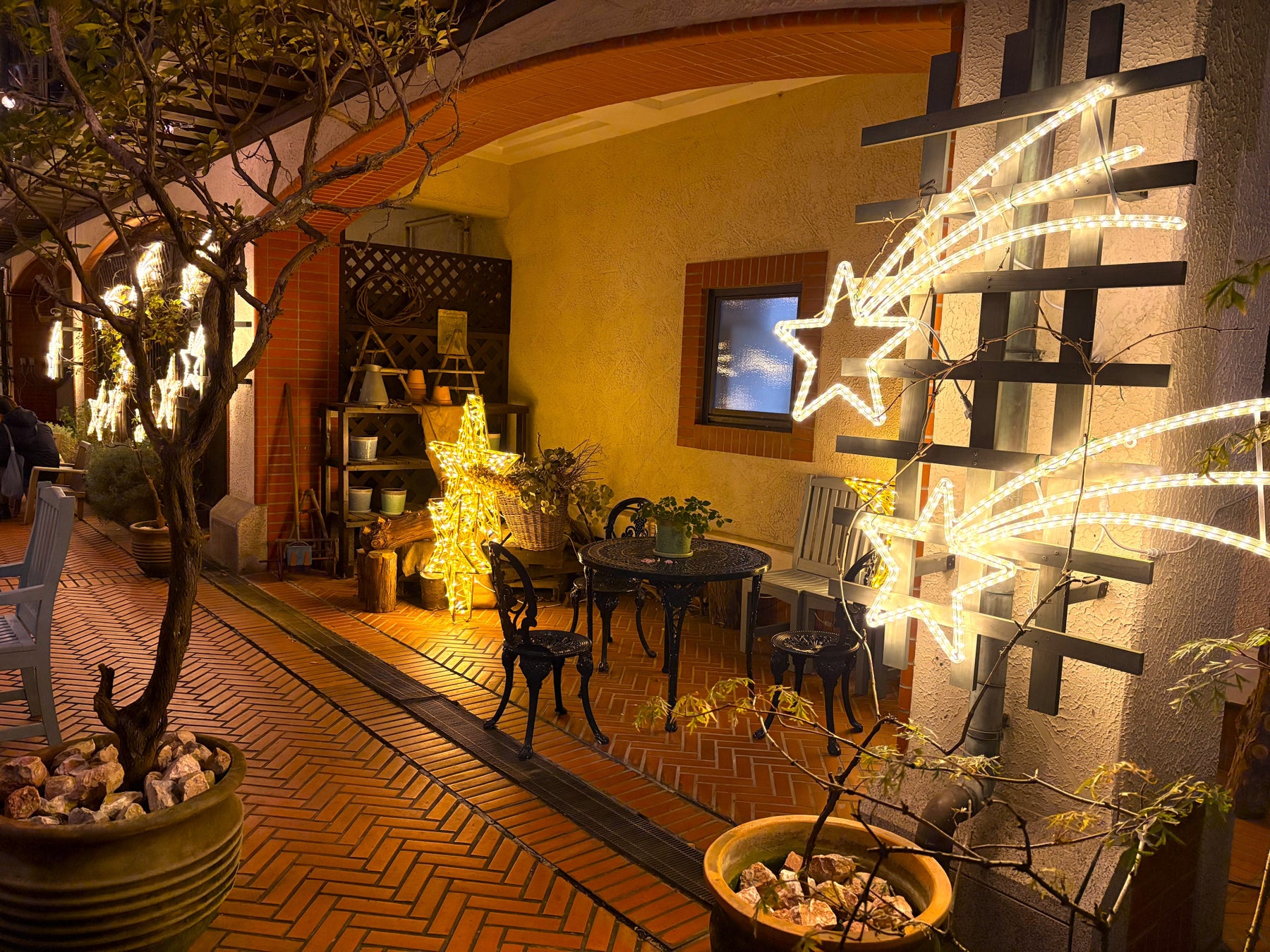・「ヴェランダクリスマス」の中庭に小さな星が・・・