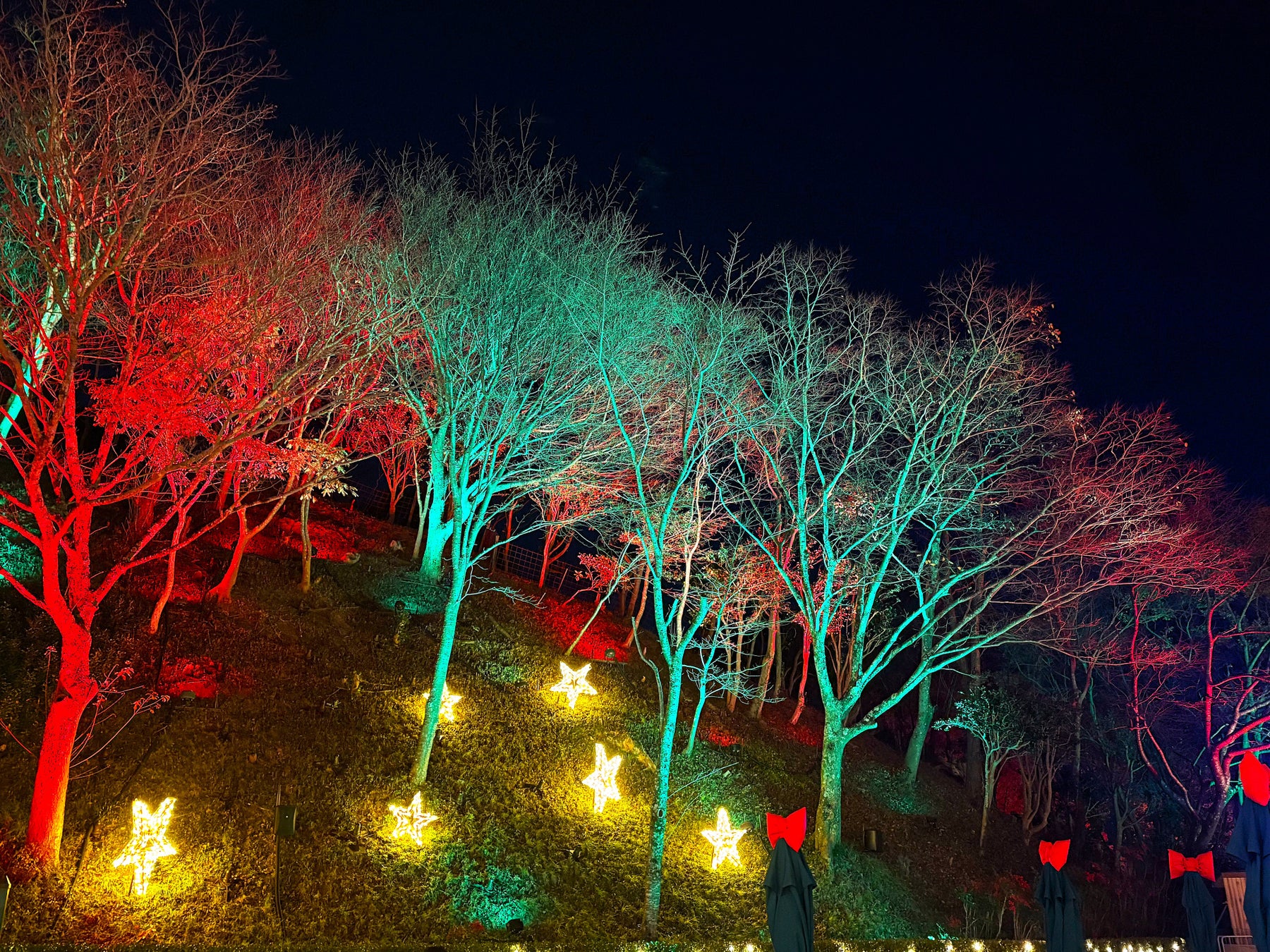 巨大ツリー(高さ25m)、巨大リース(直径3m)、クリスマスタワー(7m)を中心に各所のクリスマスディスプレイは撮影スポットとして賑わっています。12日から25日は毎日ナイター営業を実施します。
