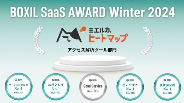 ミエルカヒートマップが、「BOXIL SaaS AWARD Winter 2024」アクセス解析ツール部門で「Good Service」「機能満足度No.1」他に選出