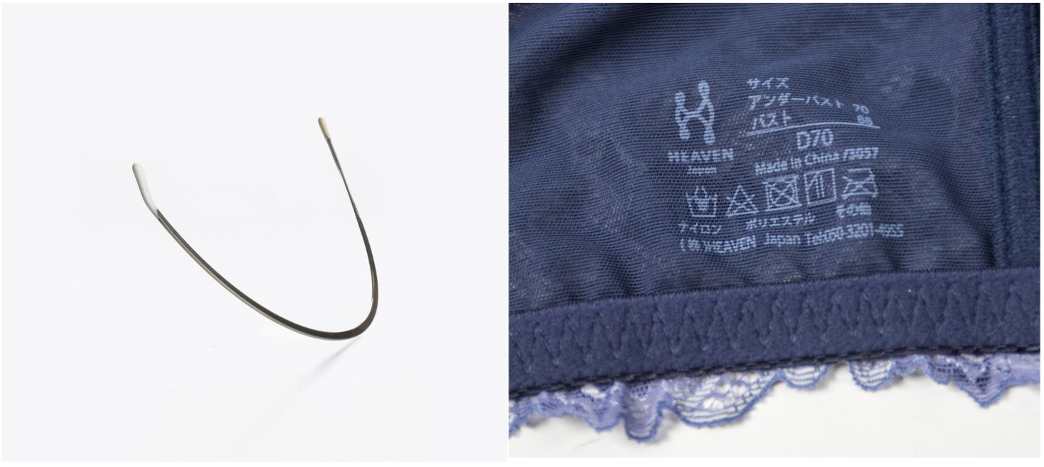 体への負担がなく着け続けたくなる、心地よい着用感にもこだわりました。カップに使用するワイヤーは、痛くなりにくいヘブンジャパン独自の3Dワイヤーを使用。取り扱い表示は、肌当たりがやわらかくチクチクしないように、生地に直接プリントする印字タグを採用しています。