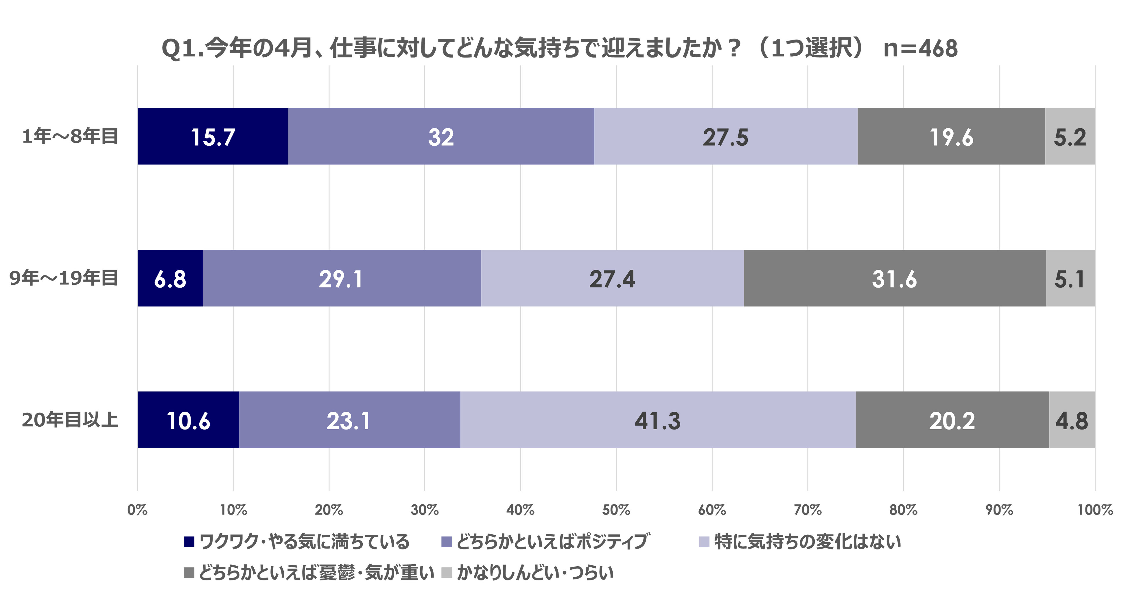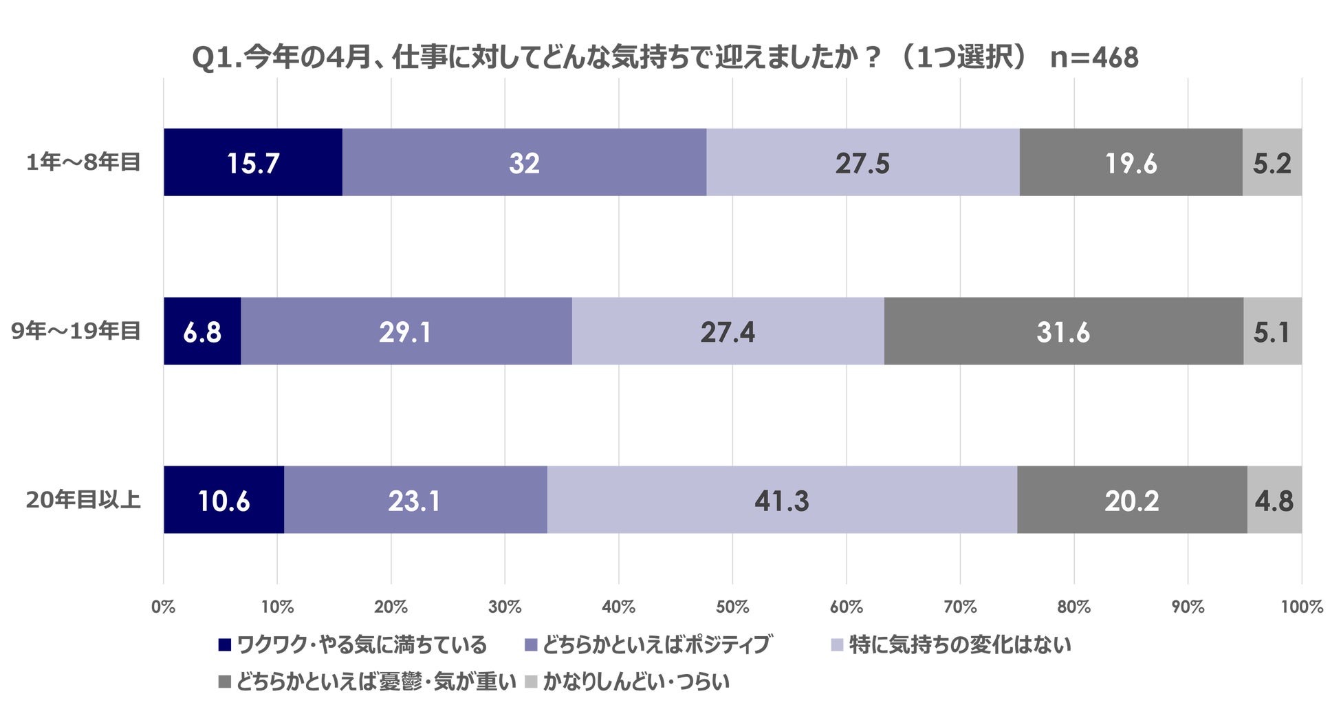 TOPIC① 社会人歴が短いほど"新年度ポジティブ"、9年〜19年目は憂鬱・気が重い割合が最多