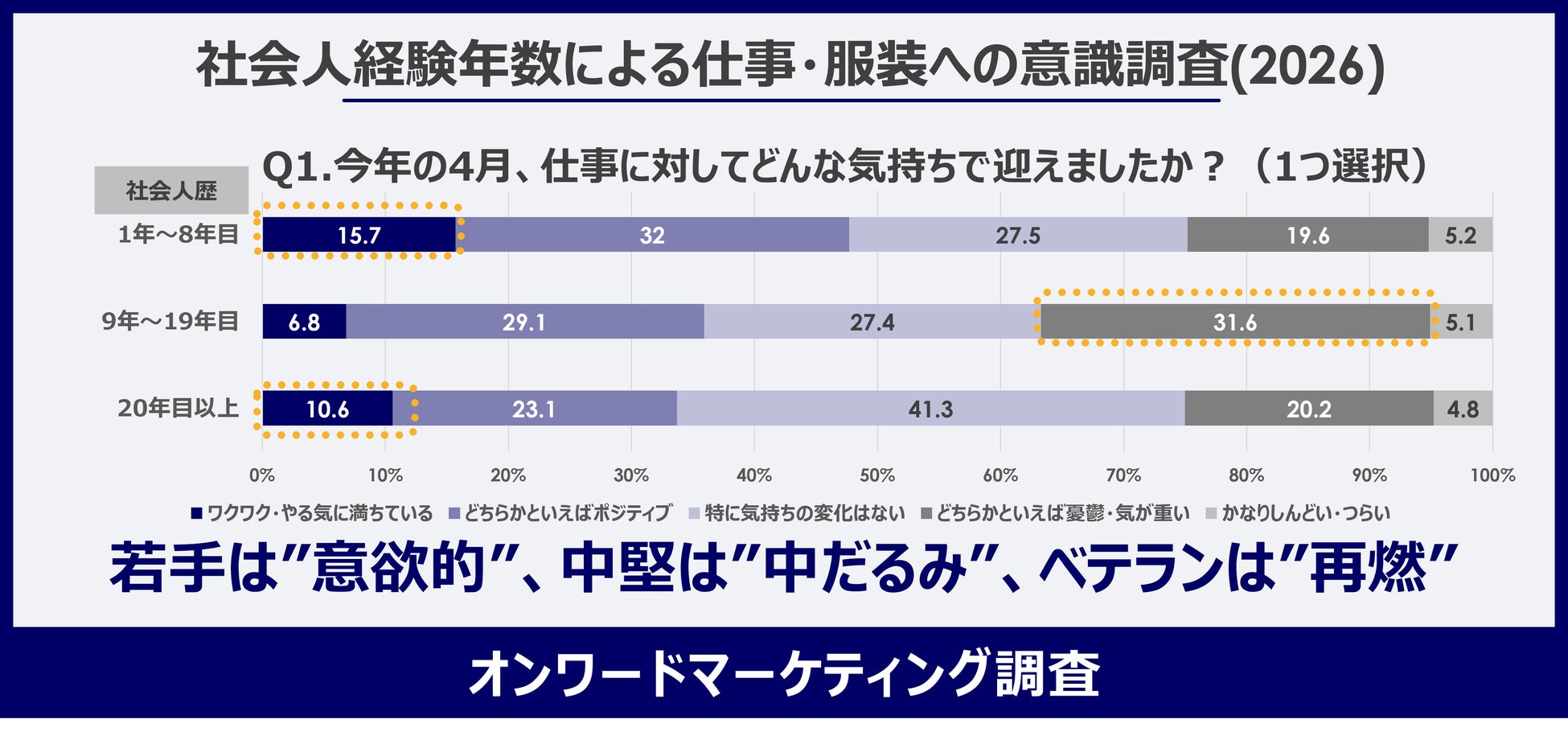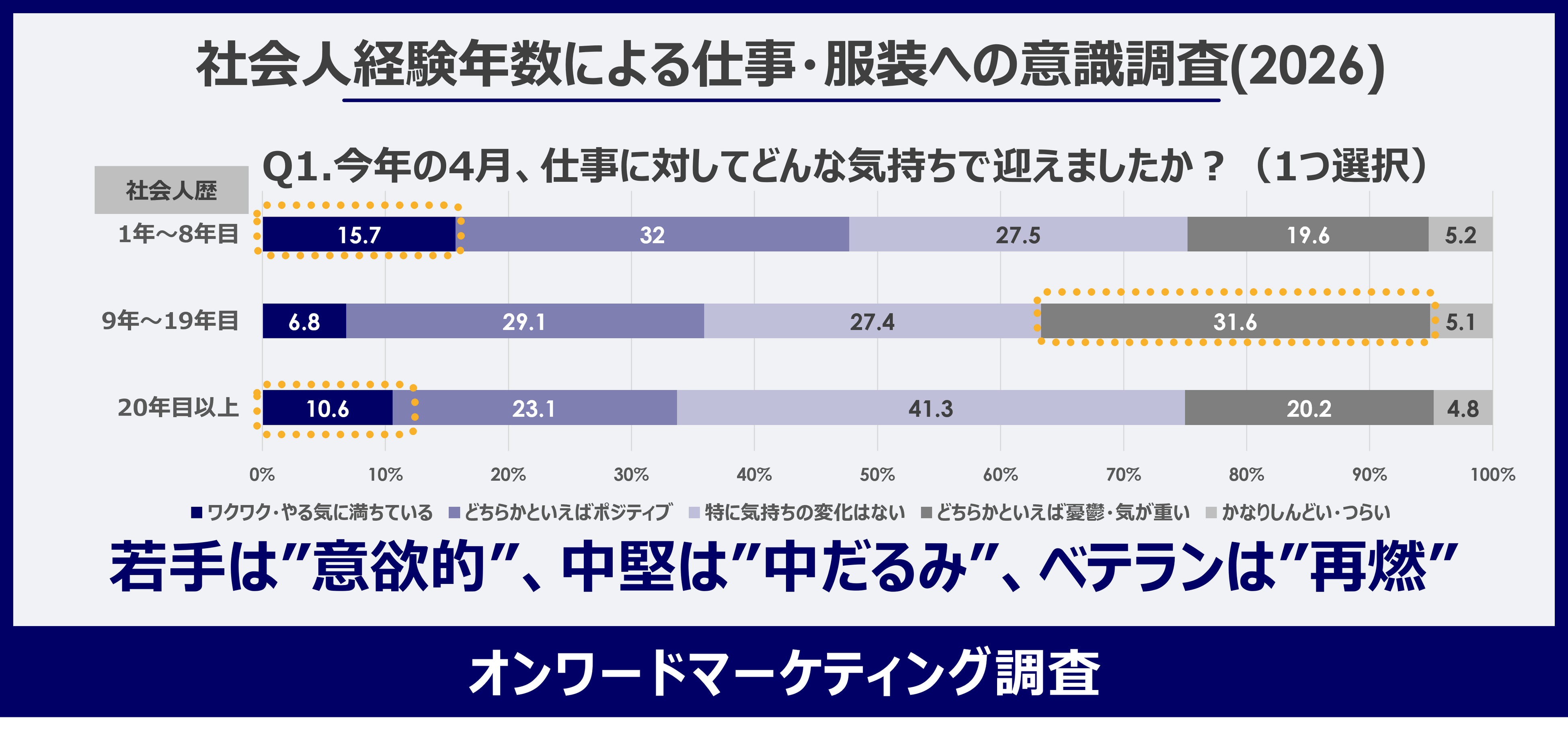 【新年度の就業意識】中堅3人に1人が仕事意欲低下で“中だるみ”一方ベテランは“再燃”傾向モチベーション・働く理由・服装意識に世代差