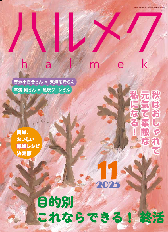 50代からの女性が前向きに明るく生きるための価値ある情報をお届けしています。健康、料理、おしゃれ、お金、著名人のインタビューなど、幅広い情報が満載です。 また、雑誌「ハルメク」の定期購読者には、本誌とともに提供するカタログと、オンラインでの通信販売を行っています。販売している商材は、ファッション・インナー・コスメ・美容・健康など多岐にわたり、独自のシンクタンクである「ハルメク 生きかた上手研究所」を通じて利用者の声を徹底的に調査、反映した商品開発で、多くの女性から支持を得ています。