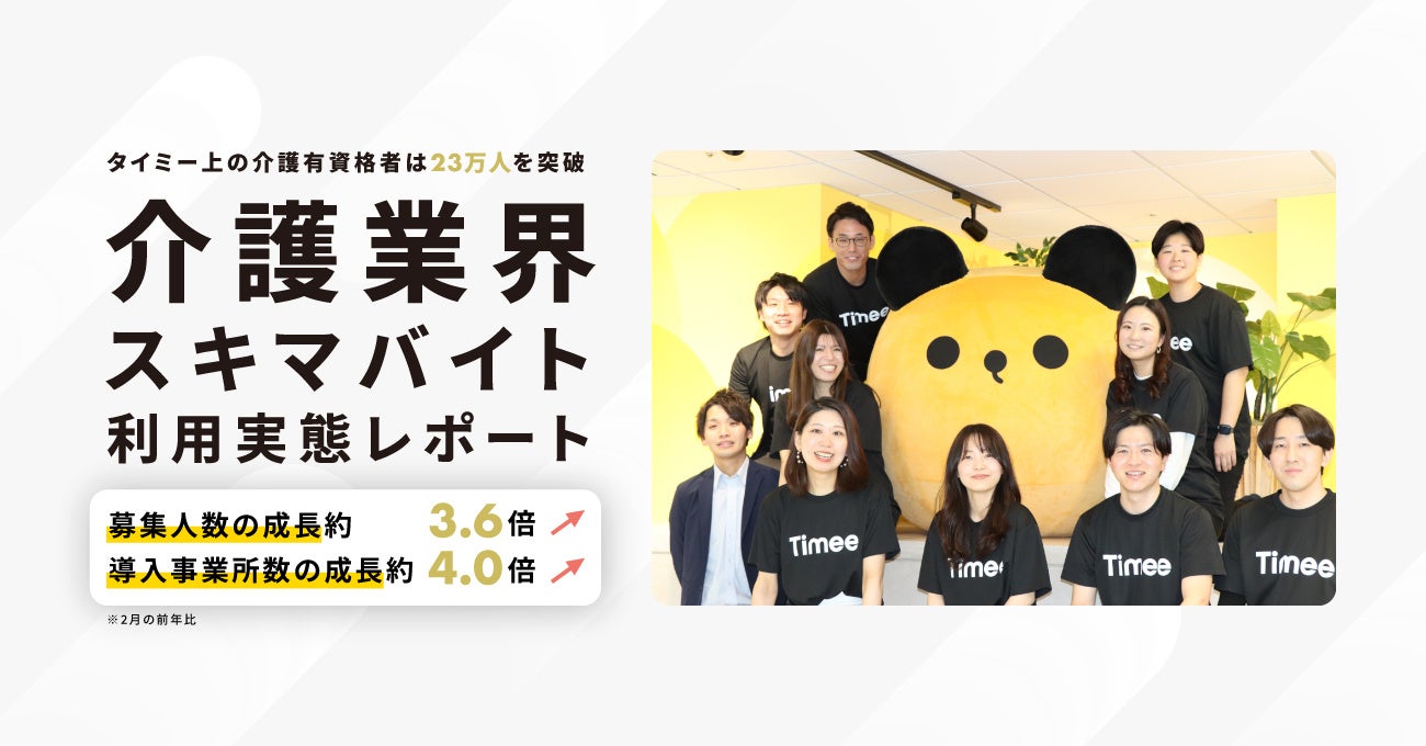タイミーでは、スキマバイトを通じて新しい働き手との接点作り、介護業界で働く人のすそのを広げ、人材不足をはじめとする介護業界の課題解決に取り組んでまいります。